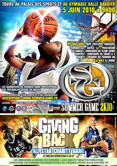 Officiel Pour cette 2éme édition nous tenions à vous informer sur les nouveautés du SUMMER GAME 2K10. cette année le tournoi ce déroulera au Palais des Sports et gymnase halle Bardier. il y'aura des animations ( match de 1x1, tir du milieu de terrain, concours de shoot à 3pts et le slam dunk contest) et des spectacles de danse
